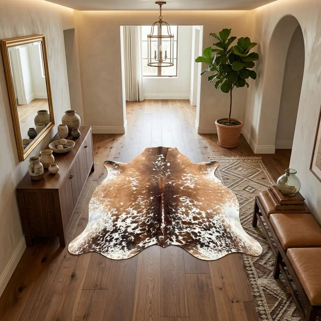 Elevate Your Space: Genuine Brown & White Hair-on-Hide Rug