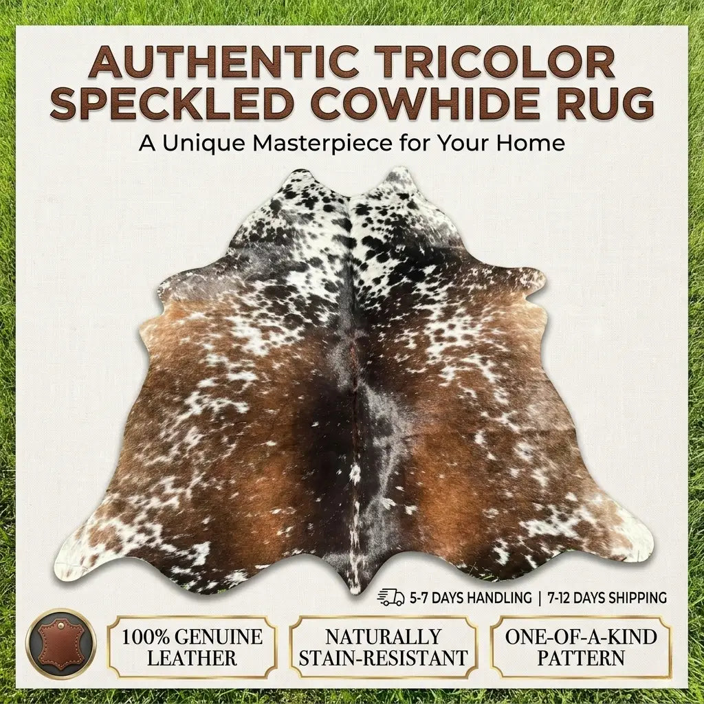 Premium Authentic Tricolor Speckled Cowhide Rug