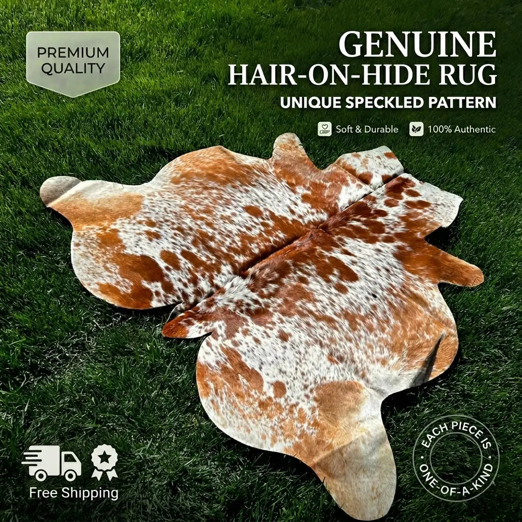 Genuine Hair-on-Hide Rug | Natural Brown & White Speckled Design