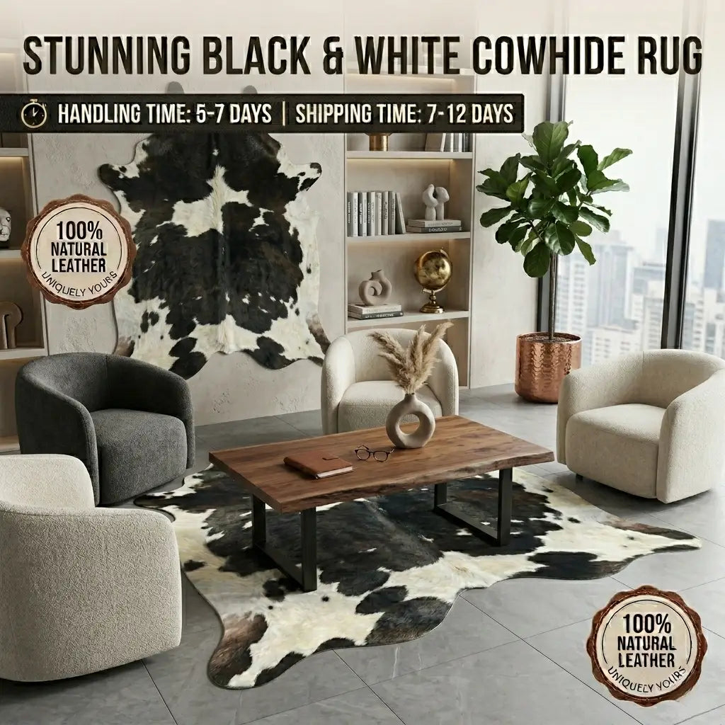 Elevate your interior design with the timeless elegance of our Stunning Black & White Cowhide...